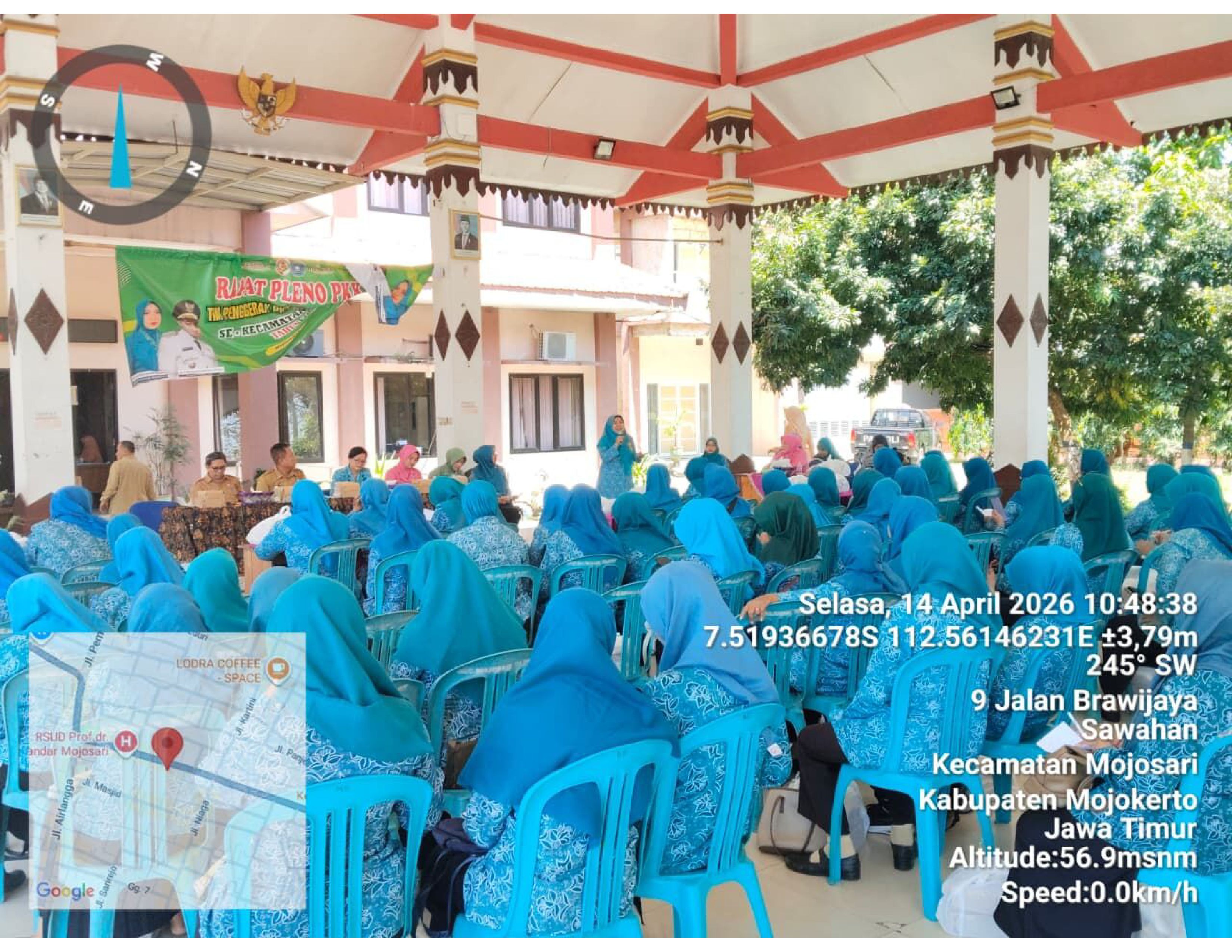 Kegiatan pleno ini dihadiri oleh berbagai unsur penting di wilayah Kecamatan Mojosari, antara lain Camat Mojosari beserta istri selaku Ketua Tim Penggerak PKK Kecamatan Mojosari, perwakilan Persit, Bhayangkari, Kepala Puskesmas Mojosari dan Modopuro, kader PKK, serta Pokja 1 hingga Pokja 4 se-Kecamatan Mojosari.